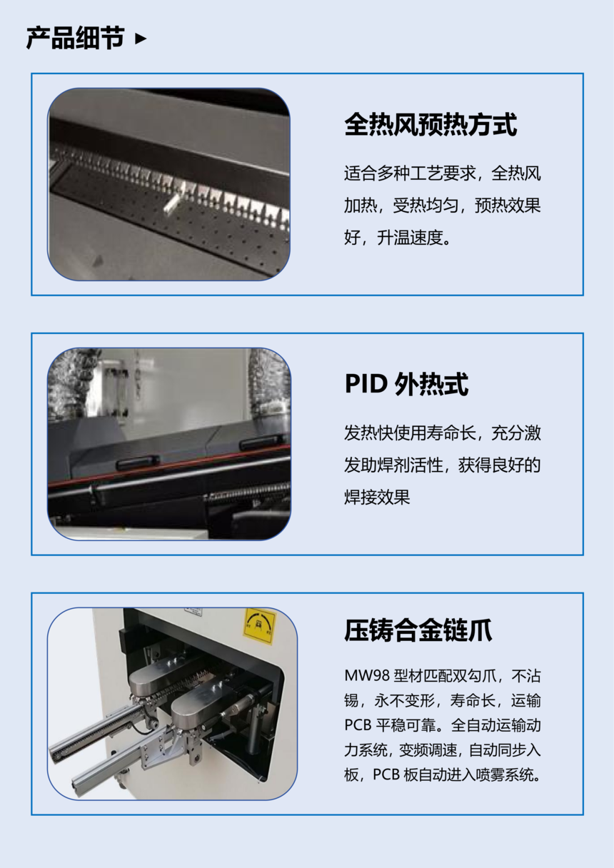 宏翔450氮氣波峰焊 氮氣波峰焊錫爐功能介紹:局部充氮裝置固定于爐膽上方,氮氣可形成一個保護層覆蓋錫爐表面,有效提升產(chǎn)品的焊接質(zhì)量,減少虛焊、橋連、焊點發(fā)暗等焊接缺陷,減少錫的氧化量。 宏翔智能裝備(深圳 )有限公司,是SMT整線設(shè)備供應(yīng)商,主營業(yè)務(wù)為JUKI/PANASONIC/YAMAHA貼片機及周邊設(shè)備的銷售服務(wù),如貼片機、錫膏印刷機、SPI、AOI、回流焊、波峰焊、激光導(dǎo)航AGV車、上下板機、X-RAY、點料機、自動接料機及首件測試儀等!咨詢熱線:13612865788 |